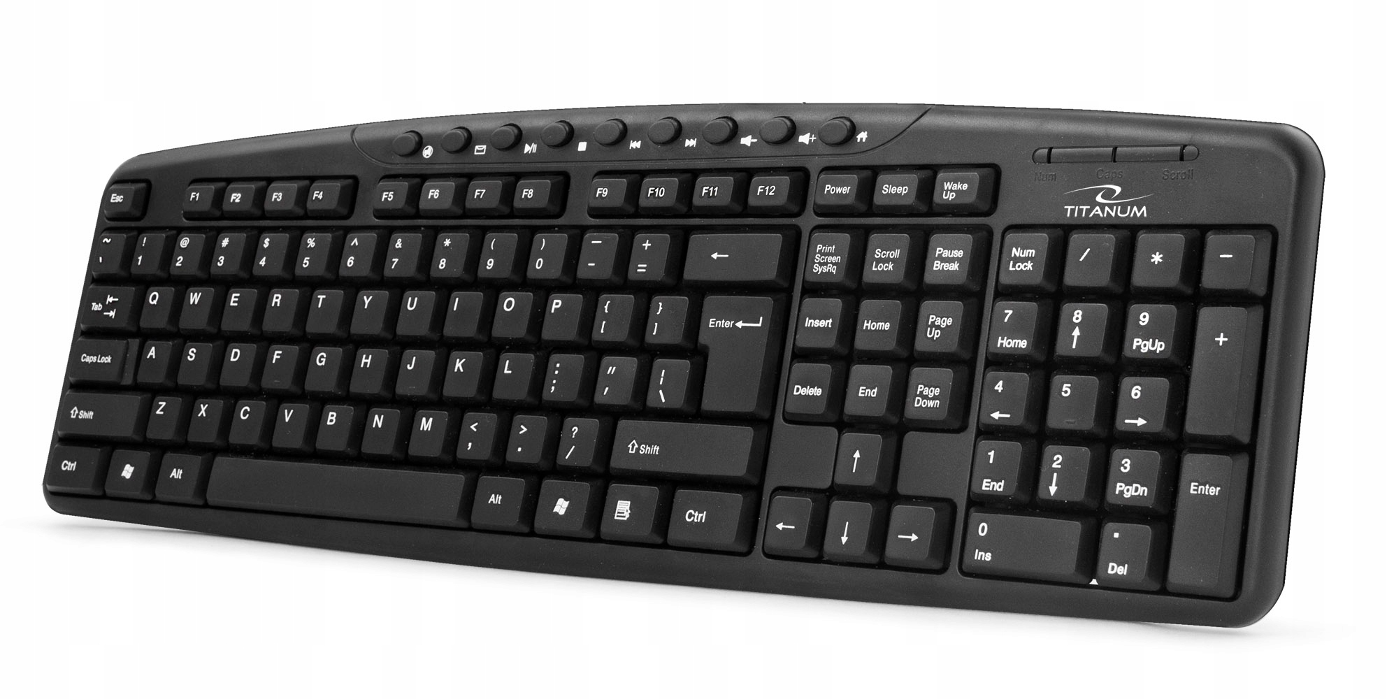 Wygodna, miła w dotyku, przewodowa klawiatura multimedialna.