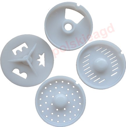 - 2 przystawki do formowania ciastek ( tarcza i przysłona )